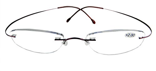 Product Description Rimless beta titanium reading glasses, flexible temple offers good wrap. NO screw design,super light weight. Comes with high index thin polycarbonate reading lens,impact-resistance, super light weight,anti-glare,UV protection coating. 0