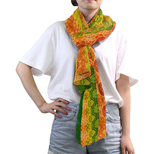Binding : Apparel Product Description ALAZA Custom Print Scarves are great for dressing up any outfit during Summer, suited for both formal and casual. About Product: 1.The scarf is 1.8 x 0.9 CM (L x W) with breathable chiffon material. 2. Unique design and variety of colors,suitable for you in different occasions. 3. It also can be a great gift for your friends and loved ones. 4. The actual colour of the item maybe different from the picture shown due to the different screen of display or reflecting light when shooting.