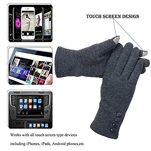Women's Touch Screen Gloves Warm Lined Thick Winter Christmas Birthday Festival Gift with buttons Ladies touchscreen gloves are very convenient for texting and typing which allows you to interact with any touch screen device-smart phone,tablet Touchscreen Mittens Perfect for biking,Mountaineering,Skiing,Sports,Exercis,Fitness,Driver and other winter outdoor activities Features: Gloves 100% brand new and high quality Material: Cotton and Polyester,Plush lining texture Unique design keep your hands warm and looking cool Packing : A pair of Outdoor Winter Gloves Notice : 1. 0-1in. error of measuring is a reasonable range due to different measurment methods 2. Please allow little color difference due to different camera or light environment If you have any question, please contact us,we will help to you in 24 hours