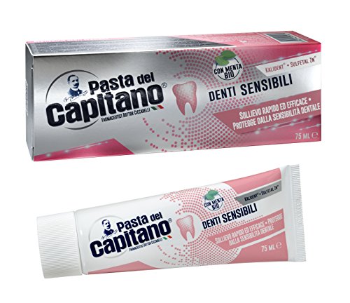 The specific response to the problem of dental sensitivity, able to ensure fast and effective relief. It contains: the unique molecule Sulfetal Zn®, with the antibacterial action of Zinc; a Natural Organic Mint; Kalident®, an active ingredient which helps protect against tooth demineralisation, a major cause of tooth sensitivity; Potassium Nitrate, which acts quickly, relieving problems related to dental sensitivity.Pasta del Capitano is a range of products dedicated to oral hygiene created by Farmaceutici Dottor Ciccarelli. Its foundation dates back to the beginning of the last century thanks to Clemente Ciccarelli, Captain of the Royal Army, a doctor in Pharmaceutical Chemistry and descendant of a legendary family of apothecaries dating back to the XVIII century. Clemente Ciccarelli, Captain of the Savoy Cavalry and chemist, invented the famous toothpaste that took his name... and his effigy. Since 1905, passion, attention, and transparency are unwritten ingredients, prime materials on which we have established our work.