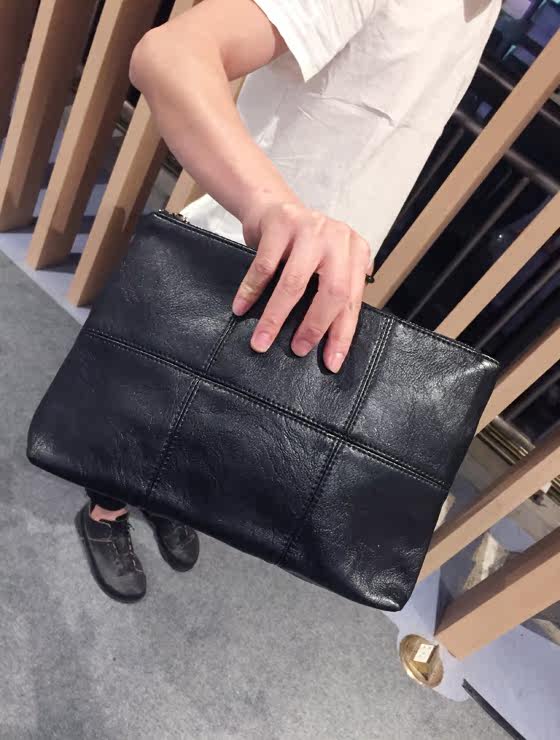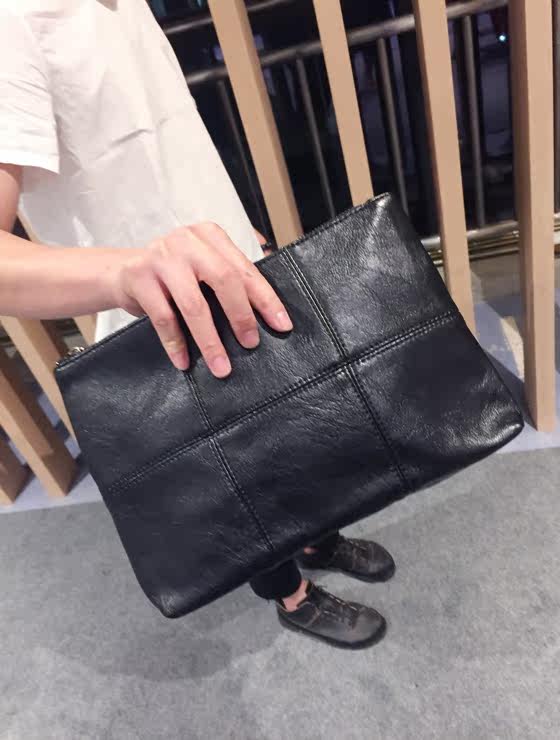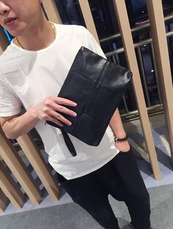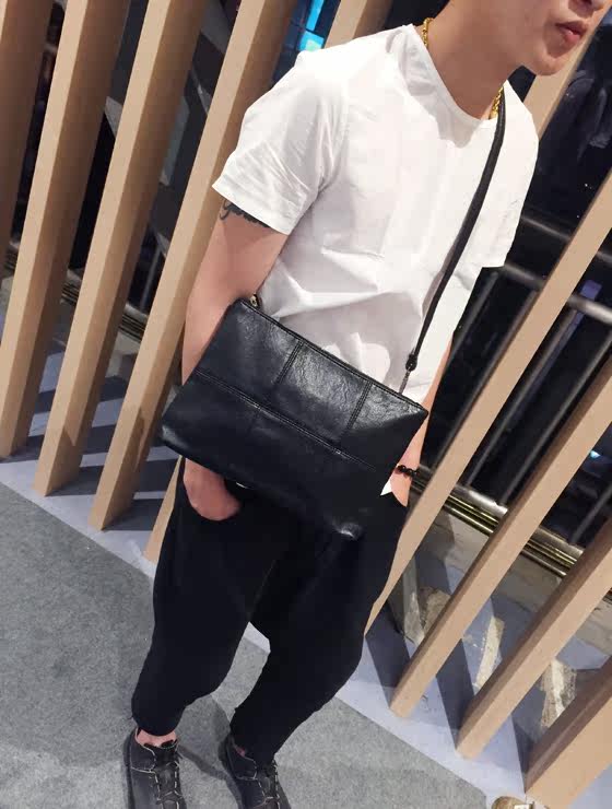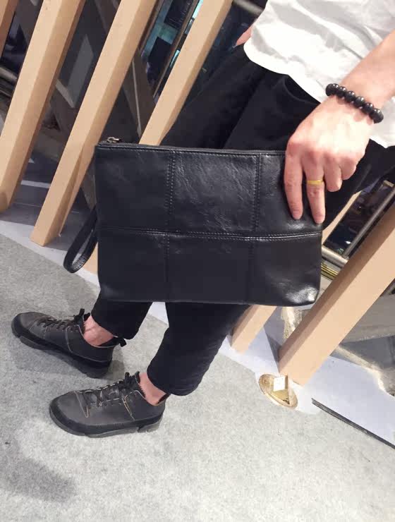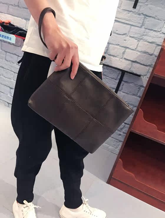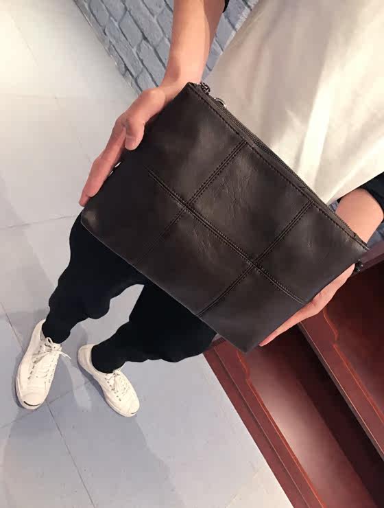 新款男士手拿包韩版格子单肩包斜跨包潮流时尚手抓包商务休闲男包