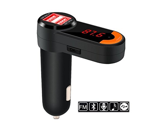 -. Feature : Bluetooth Car Charger is a special product that can switch the call to the hands-free state via Bluetooth module. / EASY TO USE:pairing your phone and FM transmitter by bluetooth, insert device in the socket, switch to FM radio mode, make sure FM transmitter frequency the same as car's FM, then you can enjoy your music what you want ! / Enjoy the music and answer the call in hands-free mode without refitting your car, which ensure the driving safety. / Dual USB Charging port:Total output 5V/3.1A.You can charge your iphone/Ipad/tablet/and other smartphone when you enjoy your driving / Echo cancellation and noise suppression(CVC) technology.