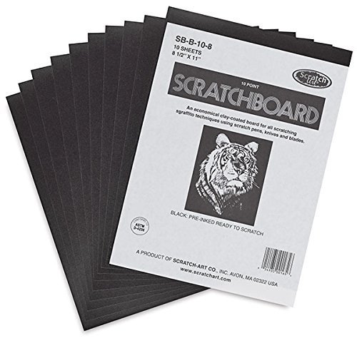 Scratchboard Artists Tools Drawing Pack - Black Coated 8 1/2 x 11" boards 10 Sheets with Scratch Metal Tools / Pen art bundle Art Scraper Tools, 4-Pack