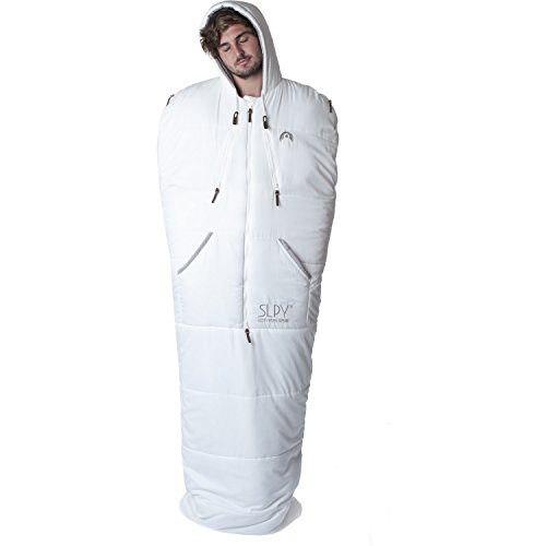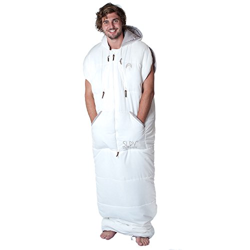 Studio : SLPY Publisher : SLPY Product Description The Mens Original Sleepy is a wearable sleeping bag you can sleep, wear and explore in. Ideal for camping, festivals, backpacking, travelling, couchsurfing or anytime you need the ability to keep warm and mobile. Constructed with YKK Zips, a Thermolite filling and a soft touch, textured pongee outer the Original Sleepy uses the best materials to provide a technical sleeping bag able to withstand temperatures down to -15 degrees. The Original Sleepy combines the best of fashion, action sports and technical outerwear to provide camping cool. With a central two way zip getting in and out the Original Sleepy is easy. Opening the shoulder zips allows the arms to come out each side and the bottom 'Zipcinch' system allows the bag to be opened at the bottom and brought up to the waist to enable you to walk around in comfort. Zip chest pockets with internal media eyelet, beard guard, padded waist pockets, embroidered logos and branded leather tags provide that quality feel that will make you fall in love with your Sleepy. Why buy a normal sleeping bag? Temperature Guide: Comfort: 5 degrees, Limit: -5 degrees, Extreme: -15 degrees Fit Guide: Medium fits up to 5Ft 11 inches tall, Large fits up to 6Ft 6 inches tall Medium bag length (excluding hood) - 185cm Medium chest width - 70cm Large bag length (excluding hood) - 208 cm Large chest width - 85cm If you like a lot of room in your normal sleeping bag or are a larger build then choose the Large even if you are a medium fit in terms of height. Compression sack dimensions: Medium is 34cm long x 20cm diameter, Large is 39cm long x 22cm diameter 0