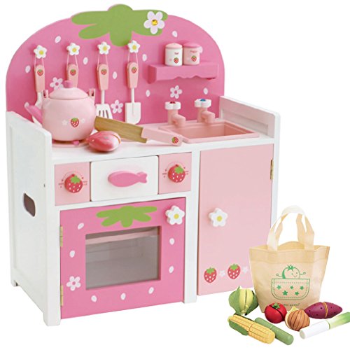 어린이 방이 화려함이 되는 핑크색의 딸기 키친세트.
