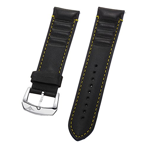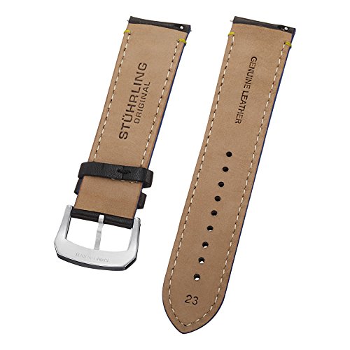 -. Title : Stuhrling Original Mens 23mm black Leather Strap with yellow stitching blue outline with steel buckle st.4ATC.332U151