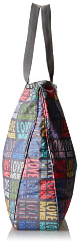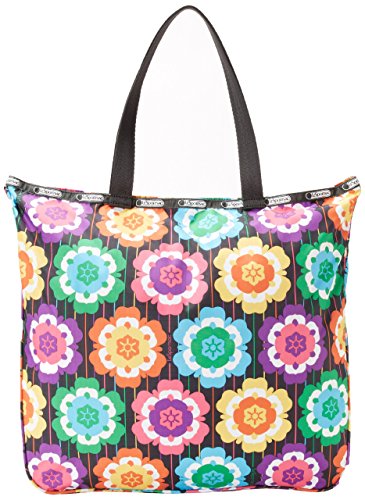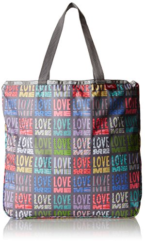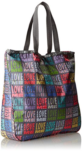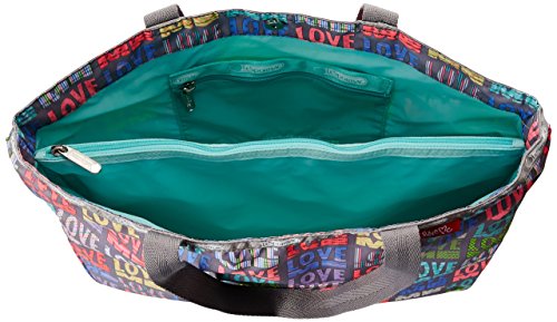 Large dual-compartment tote with logo trim at opening and piping at edges