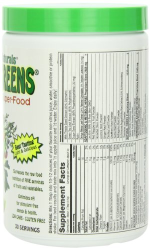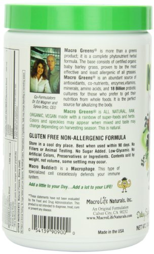 -. Binding : Health and Beauty -. Brand : MacroLife Naturals -. Department : unisex-adult -. EAN : 5760655635020 -. Feature : Net quantity of 10 ounces / Surpasses the raw food nutrition of five servings of fruits and vegetables / Optimizes pH for stimulant-free health / An abundant source of antioxidants, co-nutrients, enzymes, vitamins, minerals, amino acids, and acidophilus cultures / Made in the USA -. IsAdultProduct : 0 -. Label : Miracle Greens -. LegalDisclaimer : * These statements have not been evaluated by the Food and Drug Administration. This product is not intended to diagnose, treat, cure or prevent any disease. ** Always refer to the manufacturer's label on the product for description, recommended dose and precautions. -. Manufacturer : Miracle Greens -. Model : 45911-BA -. MPN : 45911 -. NumberOfItems : 1 -. PackageQuantity : 1 -. PartNumber : 45911 -. ProductGroup : Health and Beauty -. ProductTypeName : HEALTH_PERSONAL_CARE -. PublicationDate : 2010-08-24 -. Publisher : Miracle Greens -. ReleaseDate : 2006-03-21 -. Size : 10 oz -. Studio : Miracle Greens -. Title : Macro Greens Nutrient-Rich Super Food Supplement, 30 Servings, 10 oz (283.5 g), Package May Vary -. UPC : 054139909000