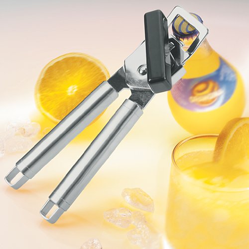 Fackelmann 45534 9.1" Stainless Steel Can Opener With Cap Lifter, Silver/Black