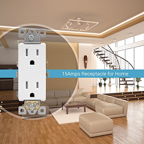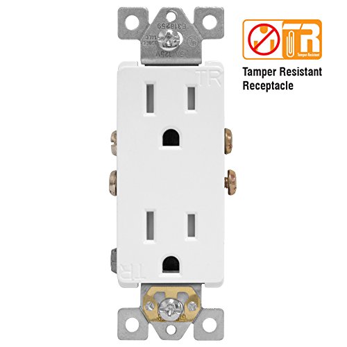 Tamper Resistant Outlet, Decorator Self-Grounding Receptacle - Enerlites 61501-TR (White)