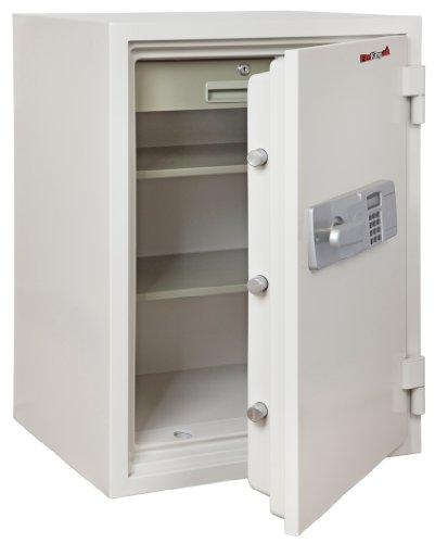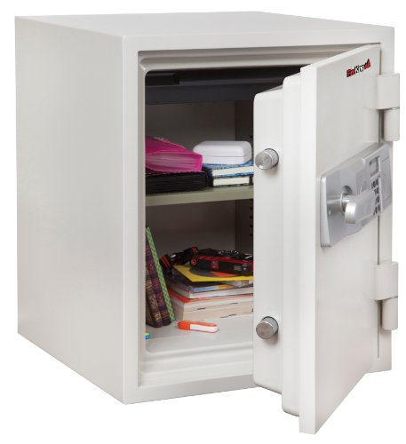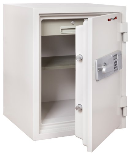 -. Binding : Misc. -. Brand : FireKing -. Feature : Two-hour fire rating; water resistant / All heavy steel construction with textured finish / Includes one tray and one adjustable shelf / Electronic lock; 4 AA batteries required (not included) / 2 deadbolts; 3 live bolts -. Label : FireKing -. Manufacturer : FireKing -. PackageQuantity : 1 -. ProductGroup : BISS Basic -. ProductTypeName : SAFETY_SUPPLY -. Publisher : FireKing -. Studio : FireKing -. Title : FireKing KF16122WHE Two Hour Fire and Water Safe, 1.48 ft3, 18-1/5 x 18-1/3 x 21-3/4, White (FIRKF16122WHE)