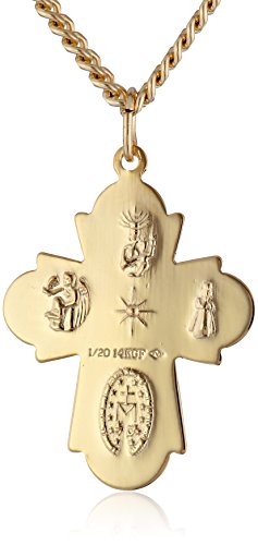 Men's 14k Gold-Filled 4-Way Medal Pendant Necklace with Gold Plated Stainless Steel, 24"