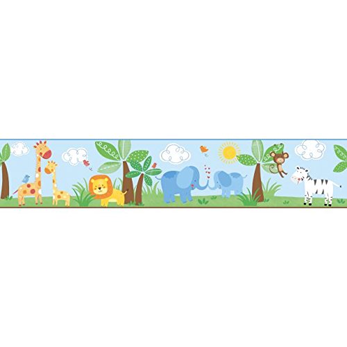 -. Title : York Wallcoverings BS5340BD Room To Grow Baby Safari Border, Blues/White/Greens/Black/Yellow/Red/Orange/Brown