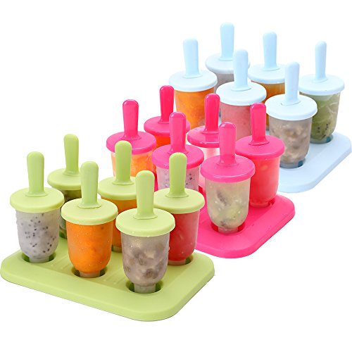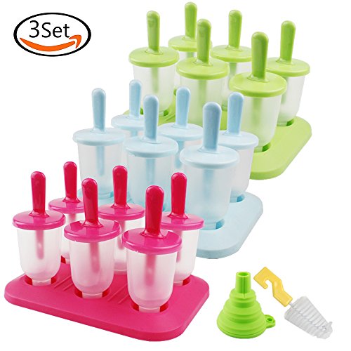 Whonline 3 Sets 18pcs Reusable Round Ice Popsicle Molds Ice Pop Makers with Brush and Funnel