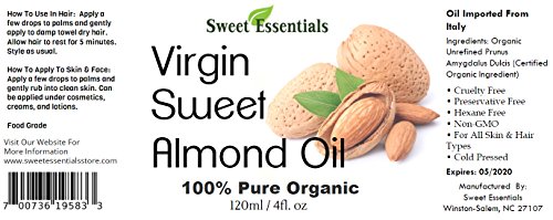 Almond Oil Pampers The Skin and Hair Almond oil is an excellent emollient and moisturizer. As an emollient it nourishes and softens the skin and hair helping to keep it smooth to the touch. Almond oil is similar in composition to the oil baby's excrete to keep their skin and hair healthy. This composition is beneficial to protecting and conditioning your skin no matter your age. By helping the skin stay healthy it promotes a youthful skin complexion. A lovely moisturizing oil that is very light and absorbs well. This is one of the most useful, practical, and commonly used oils. It is great for all skin types as an acting emollient and is best known for its ability to soften, soothe, and re-condition the skin. And there are other benefits which often occur as a result of daily almond oil hair uses. Many people report that their loss of hair has decreased and some even state that they have achieved significant hair growth as a direct result of daily or frequent almond oil hair uses.**** Benefits for Hair: Nourishes hair and smoothes hair -- cuticles -- Makes hair long, strong and thick -- Massaging with almond oil adds shine to the hair -- Controls hair fallout --Feature