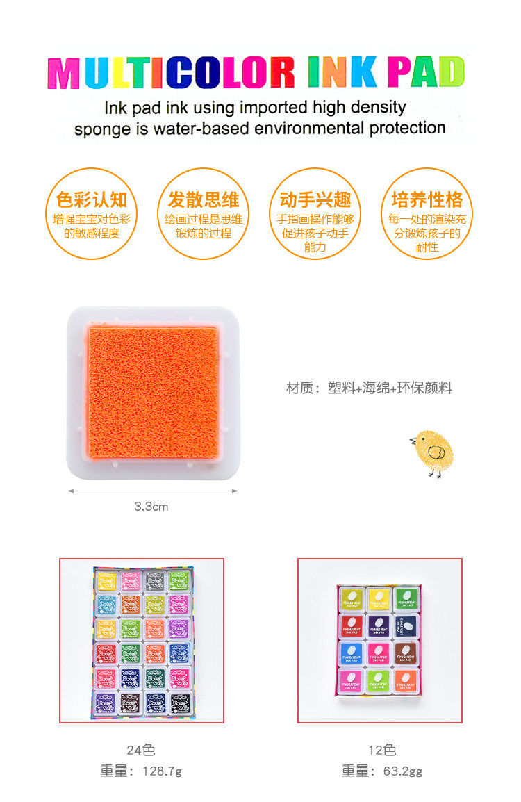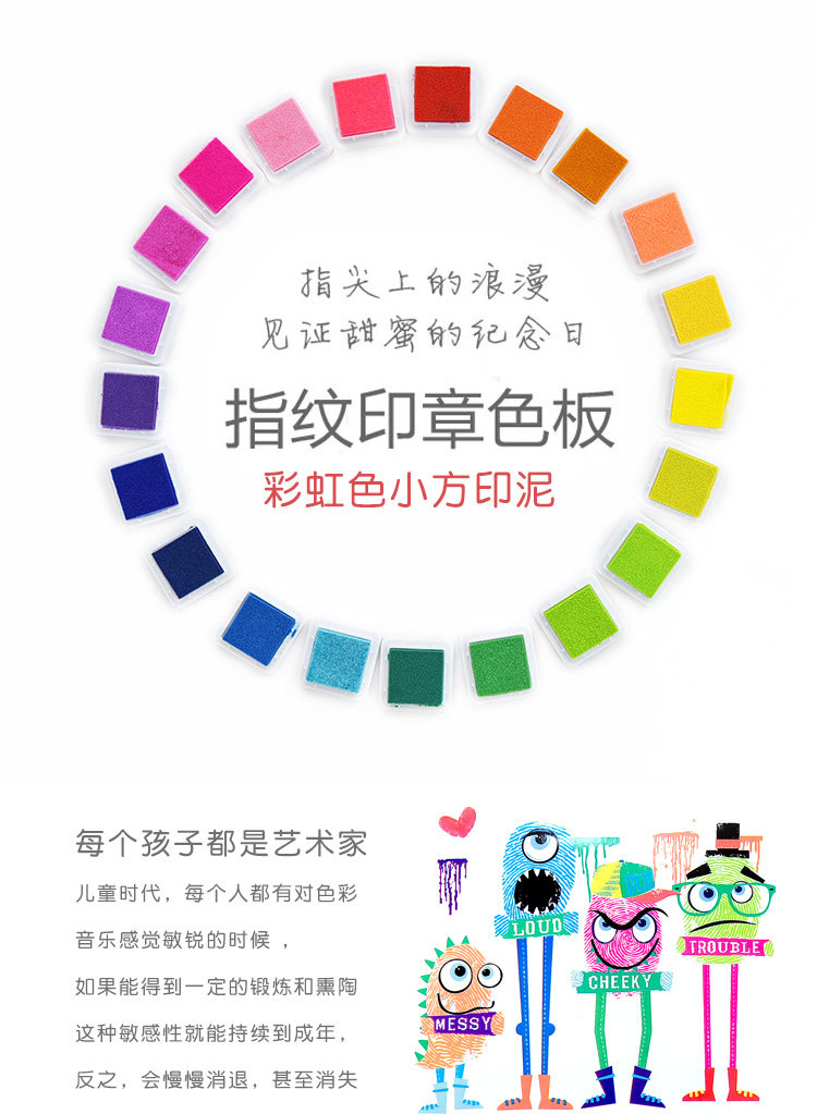 创意儿童手指画印泥套装可水洗12色24小学生彩色印章印台画画材料