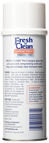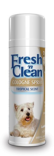 This cologne helps to keep pets smelling good by controlling body odor between baths. Fresh n Clean Cologne's delicate scent rids pets of doggie odor for months. Works on wet pets too. Its long-lasting scent helps keep pets smelling fresh and clean by controlling body odor between baths. Available in a 12-ounce aerosol spray. Measures 8-inch length by 2-1/2-inch height by 2-1/2-inch width.Feature