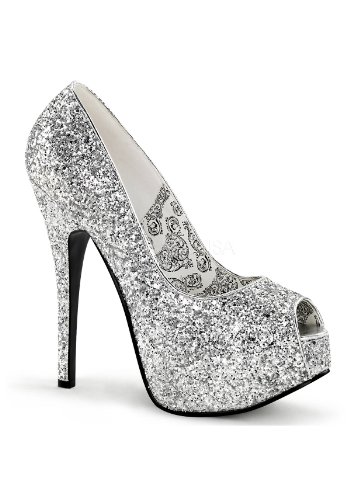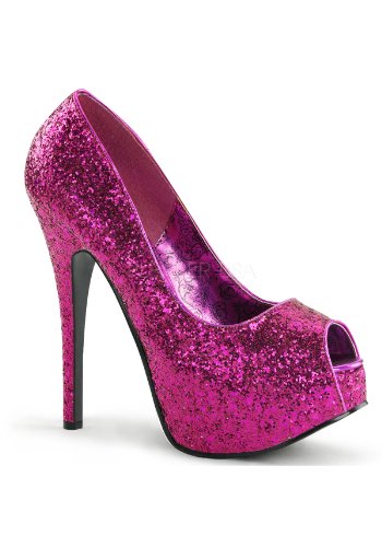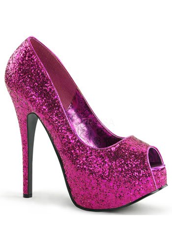 Product DescriptionHeel Height: Approx. 5 3/4' Tall. Platform measures approximately 13/4". Women's peep toe pump on 5 3/4" Stiletto Heel. Glitter upper.0