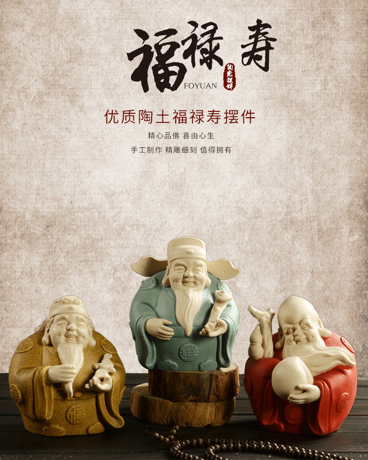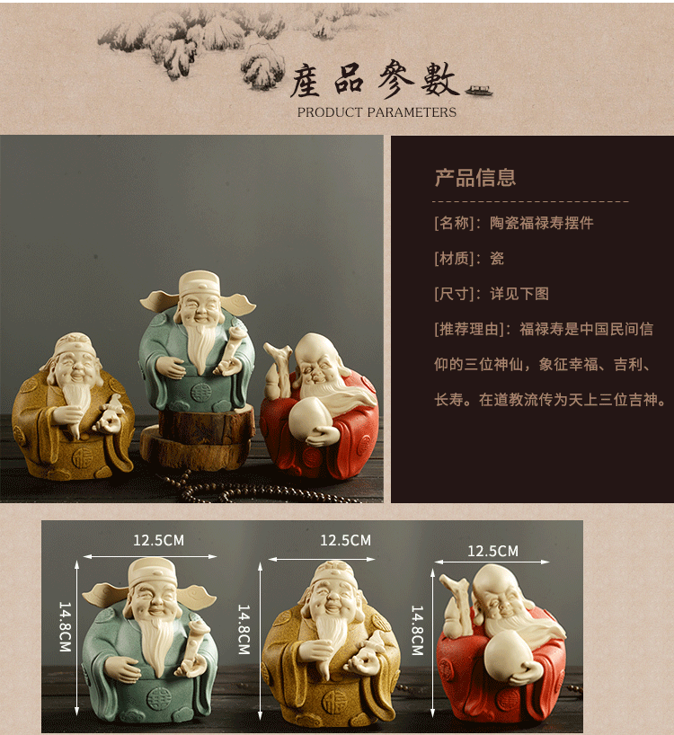 招财纳福陶瓷手工福禄寿三星财神摆件家居装饰品风水摆件开业礼品