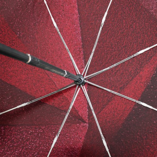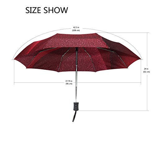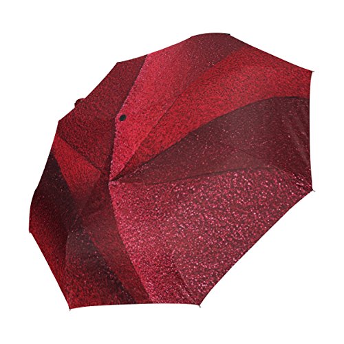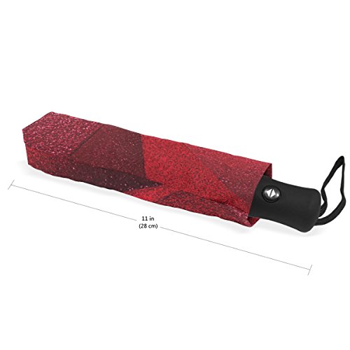 materials: made of 100% polyester pongee waterproof fabric. Weight: it is lightweight, 393g. Single-sided printing. Style: automatic open and close umbrella; foldable mini travel umbrella. Can be used on rainy and snowy day. Suitable for boys, girls, women and man. Feature: Light weight, small, portable. This Red Glitter Geometric folding umbrella is also a perfect Christmas gift, new year gift, and back to school gift. 0