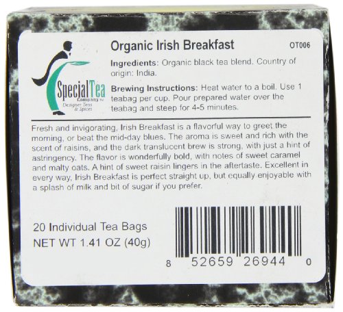 -. Title : Special Tea Organic Gourmet Black Tea Bags, Irish Breakfast, 20 Count