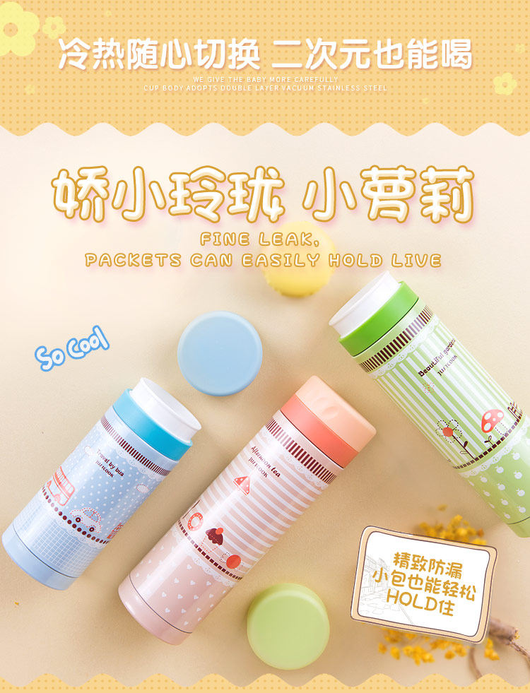 保温杯女士儿童学生可爱 卡通杯子时尚创意便携水杯 怀旧款