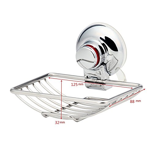 DURABLE RELIABLE QUALITY: Made of sturdy chrome and with a deluxe 304 stainless finish, BRIESLY suction cup Soap Dish make an attractive, durable accessory with guaranteed longevity for all your Kitchen or Bathroom ! The powerful suction mechanism offers solid attachment on any smooth wall and can be easily removed without leaving marks on the glossy surface.