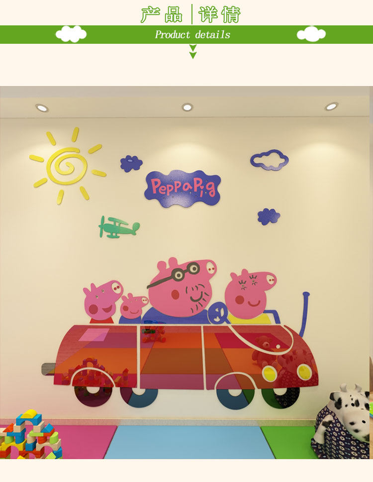 小猪佩奇卡通儿童房墙贴画幼儿园墙面装饰贴纸3d立体亚克力墙贴纸