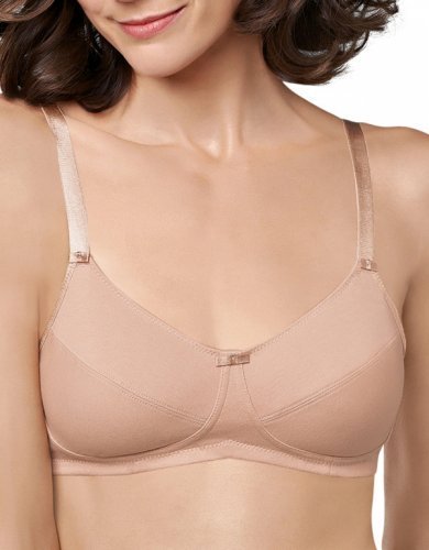 Clean looking great everyday bra. Bra is made of 100 percent cotton. Side stays offer light support at sides. Straps increase in width to maintain support in larger sizes. Cotton pockets hold a breast form or symmetry shaper securely in place if needed.