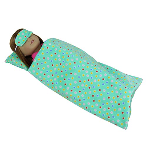 -. Title : Sleeping Series Outfits Set of 3 for 18 inch American Girl Doll Clothes - 1xGreen Sleep Bag +1xPillow +1xEyes Cover