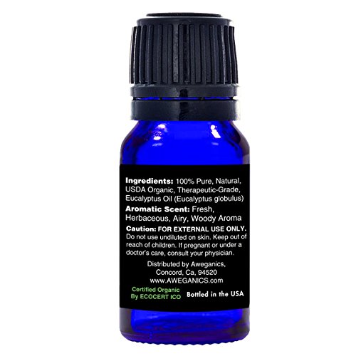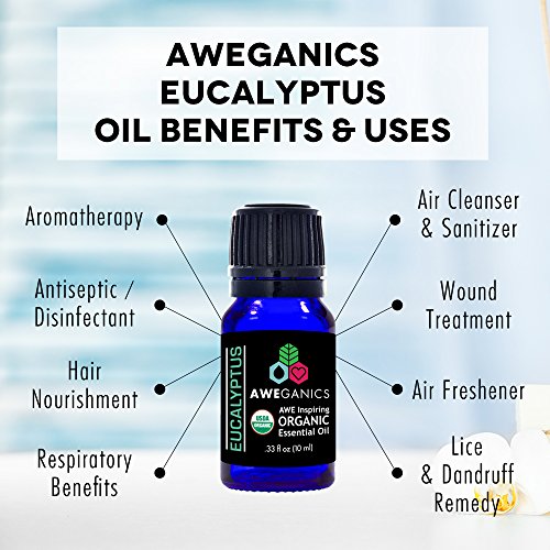 - ORGANIC EUCALYPTUS OIL - AWE INSPIRING 100% Pure, Organic, Natural Essential Oils, Therapeutic Grade