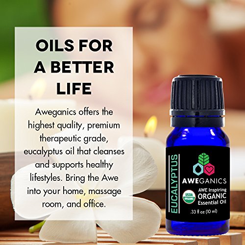 Aweganics Pure Eucalyptus Oil USDA Organic Essential Oils, 100% Pure Natural Premium Therapeutic-Grade, Best Aromatherapy Scented-Oils for...