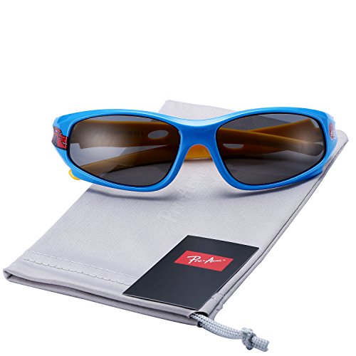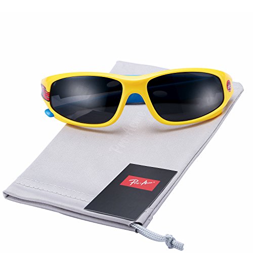 Product Description Pro Acme Kids Sunglasses can keep your children's eyes protected from the sun year round. TPEE, ultra-light frame material with super toughness, crashworthiness wear, can effectively prevent the injuries of the child's eyes and face. Colorful sports glasses design for kids and suitable for a variety of outdoor activities. FEATURES AND BENEFITS ? Super light TPEE frame: Children can hardly feel them on their face, yet they are unbreakable