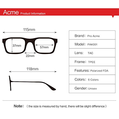 ?Great fashion frame design for cycling, running, fishing and all active outdoor lifestyles ?100% UV protection lens. Polarized lens help eliminate reflected and scattered glares ?Lifetime Breakage Warranty on Frame Lens and 30 Days Money Back Guarantee ?Pro Acme is one of the leading designing and sales companies of eyewear. By innovation and creation, we own advanced producing technology and quality control methods, specializing in producing Sunglasses, Sports Eyewear, and Optical Frames. ?Pro Acme offers trendy, up to date latest eyewear styles with qualities and designs surpassing similar mainstream product. ?Pro Acme Glasses Official Store Provide the Good Quality Glasses and Customer Service on Amazon. Please be aware that colors might look slightly different in person due to camera quality and monitor settings.