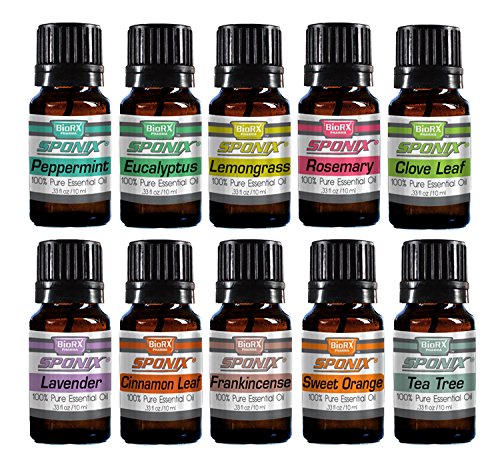 Aromatherapy Sponix Top 10 Essential Oils - 100% Pure & Natural (Peppermint, Eucalyptus, Lemongrass, Rosemary, Clove Leaf, Lavender, Cinnamon Leaf,...