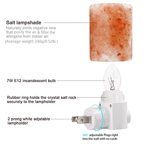 【UL Listed Plug】Simply plug to the wall outlet with no cords to trip over or extra space needed. Adjusts 360 degrees around for horizontal sockets and comes with 2Pcs bulbs for replacement.