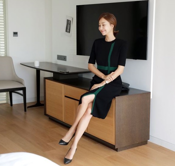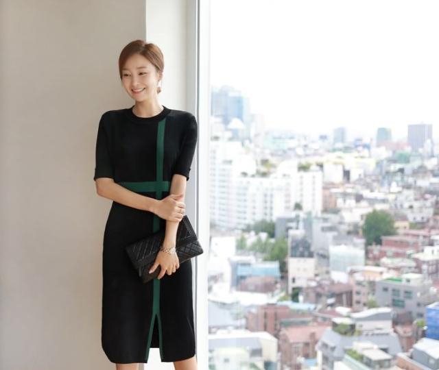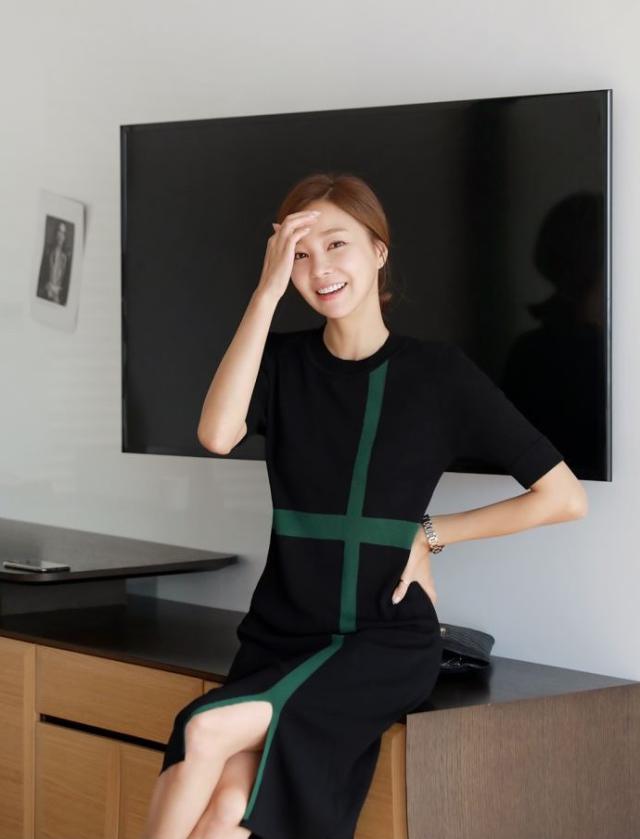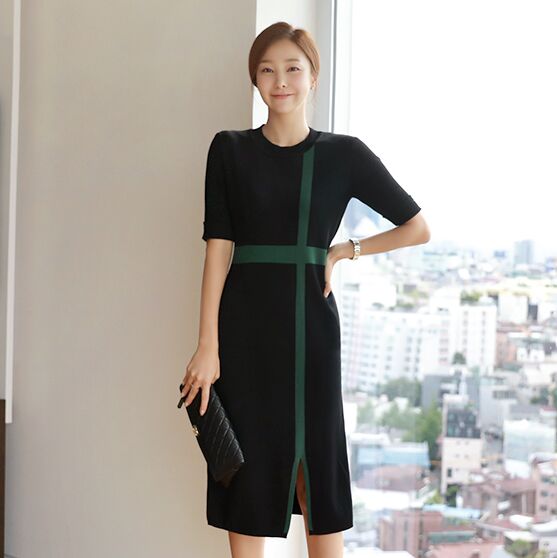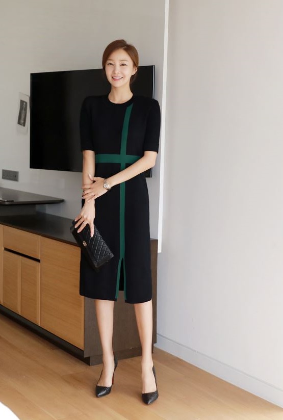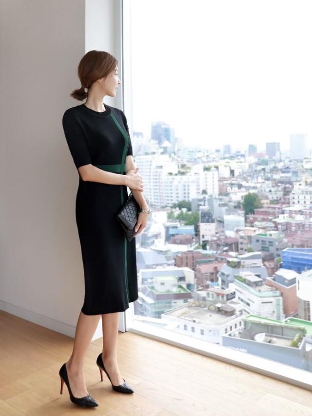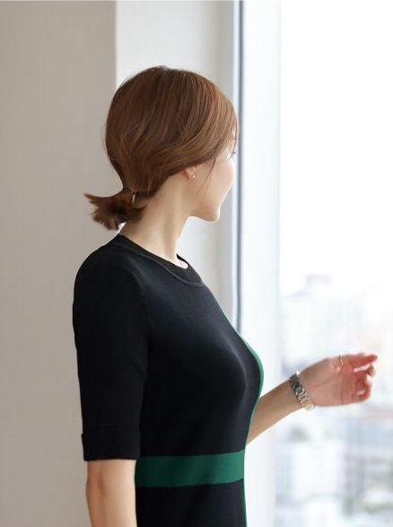 5分丈の細身の袖やシンプルなIラインが女性らしさを引き立たせます。