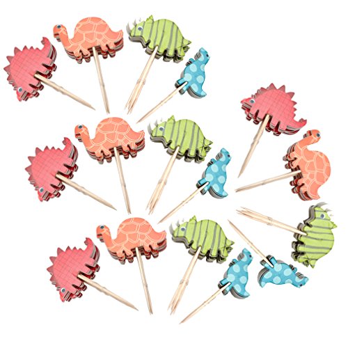 - Each Designed of cute dinosaur toppers comes with wood toothpick, helpful to stick the toppers on your cake, fruit, food,for easy and convenient to use.