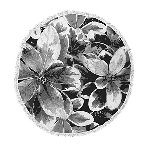 KESS InHouse Julia Grifol Leaves in Gray Floral Black Round Beach Towel Blanket