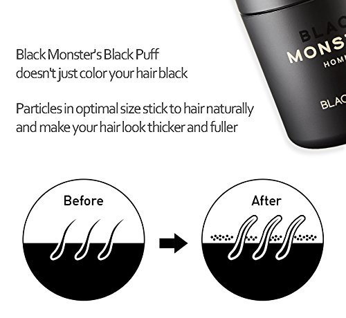 -. Title : Hair Loss Thinning Bald Spot Cover Up Building Concealer Hair Puff Fiber [BLACK MONSTER] BLAKC PUFF Root Powder puff for Hair Volume, Fiber Thickener with oil adjustment, Natural Black, Natural Brown
