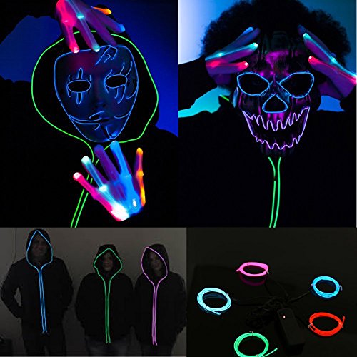 El Wire Light Battery Powered Neon Light Glowing Strobing Portable Electroluminescent Wire for DIY Pattern Cool Neon Signs,Cosplay, Halloween Decoration (5m, Mulit)