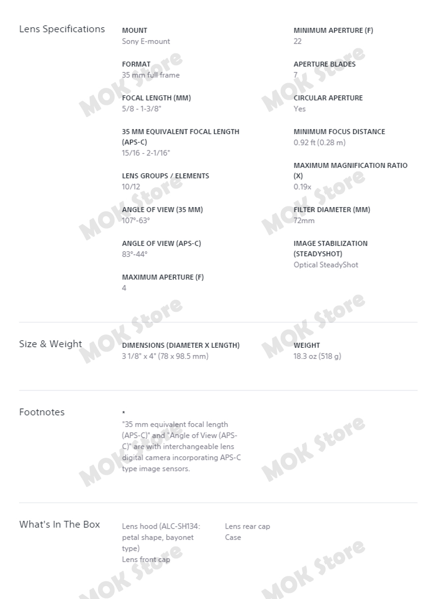 - SEL1635Z Vario-Tessar T* FE 16-35mm F4 ZA OSS Wide Angle Zoom Lens