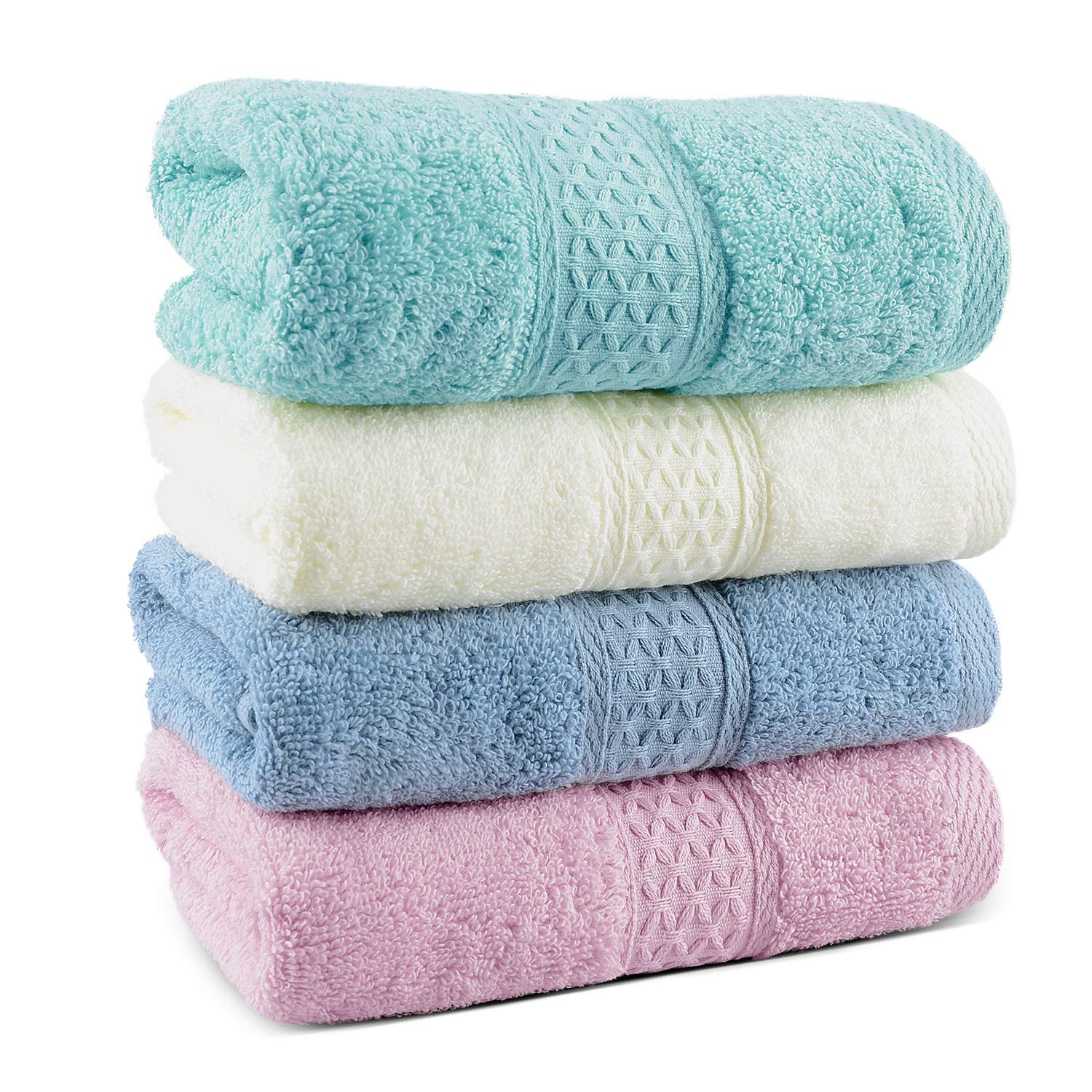 【使い心地よい素材】100%綿を採用して、ホテルスタイルのフェイスタオルです。肌に優しくて、ソフトな触感です。完璧な通気性のおかげで、細菌繁殖しにくいです。老人でも子供でも、家族全員が安心使用可能です。 【吸水性抜群】両面パイルのタイプです。パイルが通常のタオルより長いですので、吸水面積がもっと広くなっています。瞬間的に吸水できます。 【色落ち無&毛羽落ち無】活性捺染技術を採用して、艶やかな色が落ちの心配しません。ドイツ製の紡織機器で織って、綿繊維中の不純物が全て取り除かれて、毛羽落ちの心配がなくて、耐久性が向上になっています。 【無味無毒の安心品】化学性吸水材料や蛍光材料等が使用されていません。健康&エコなタオルですので、家庭用に適しますが、ホテル等の業務用にもお勧めします。 【セット内容】グリーン×1 ピンク×1 ブルー×1 ホワイト×1  75cm*34cm