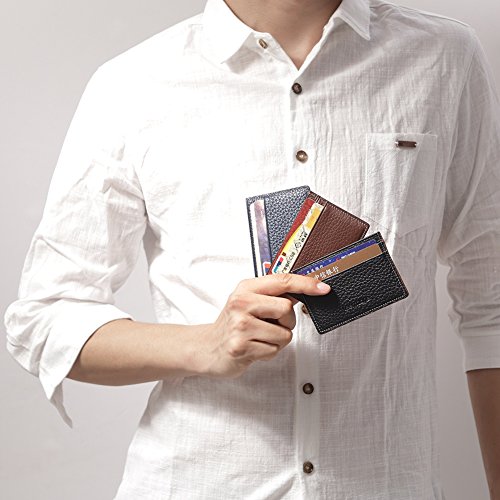 -. Feature : ✔ SUPER SLIM. The leather card holder is designed to be slim and feels amazing soft. Sturdy enough to last a long time, its super slim figure makes it easy to slide into your pockets. Made from high quality genuine leather,durable and stylish. / ✔ MULTI-FUNCTIONAL CARD HOLDER. One type with an ID card window where you can put your IDs or driver license. Features 2 card slots on the front side of case, the other side features 1 card slots. On both sides you can put 1-2 cards into each card slot if you want. / ✔ ULTRA LIGHT. The slim front pocket wallet light in weight, perfect for a night out tucked away almost invisibly in your pocket and it won't look like that you are bring a brick when you are bringing all the necessary. Professional for Business Cards or a Small Wallet which carry the cards you used. / ✔ EASY TO USE. The card sleeves are in good quality with anti-degaussing function and it's easy for cards get in&out. / ✔ SATISFACTION GUARANTEED. We value our customer and we will do our best, customers' satisfaction is our ultimate pursuit.