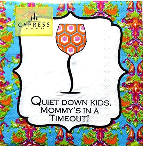 Cypress Home Cocktail Beverage Wine Paper Napkins ~ Quiet Down Kids,Mommys in Time out 40 ct