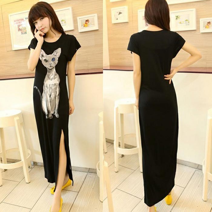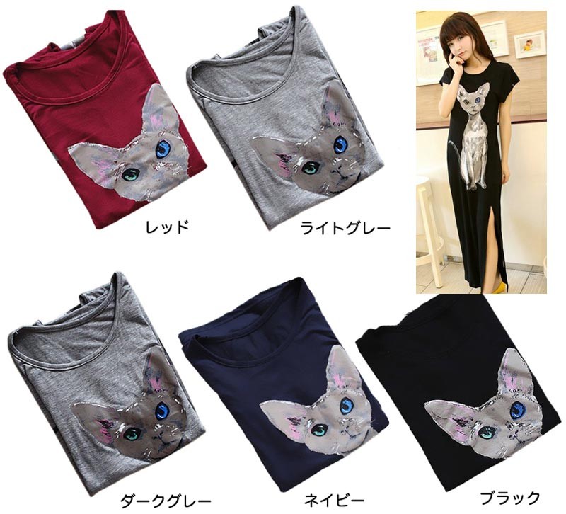 アニマルプリント・半袖・サイドスリット・マキシ丈のワンピース♪