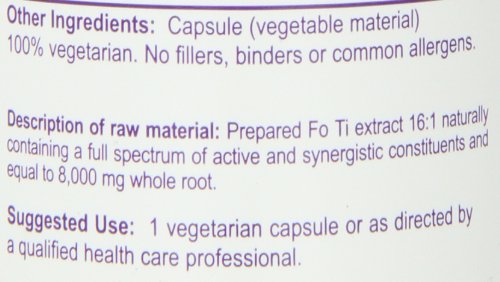 -. Feature : Helps to nourish the blood and yina nd secures the essence / Fo ti is also known as he shou wu, one of the most powerful anti-aging herbs in the world / Capsule is 100% vegetarian with no fillers, binders or common allergens