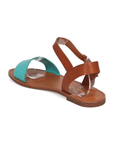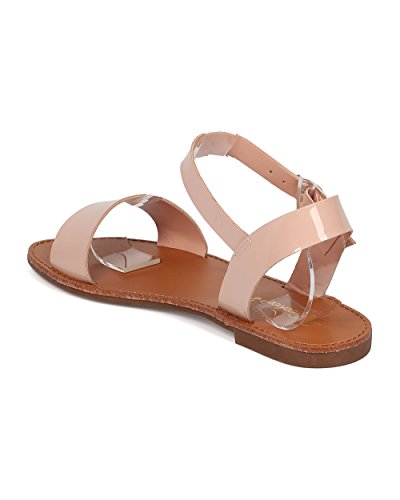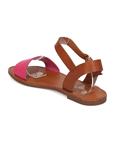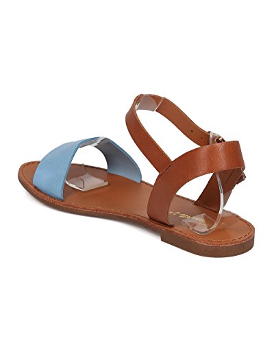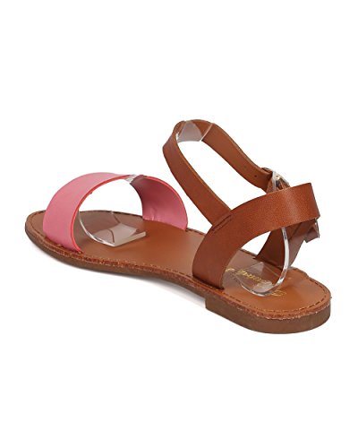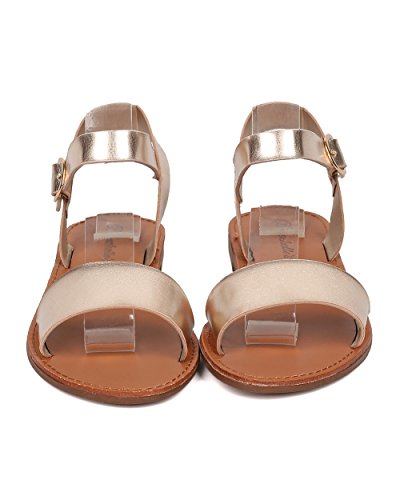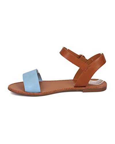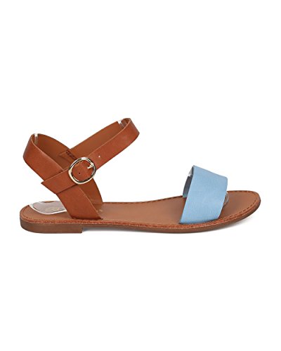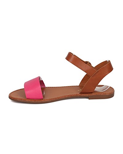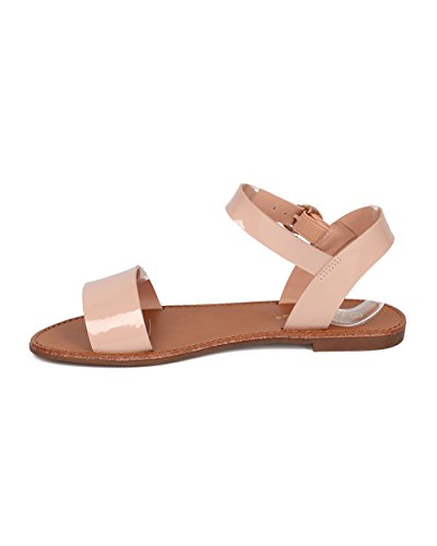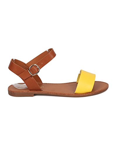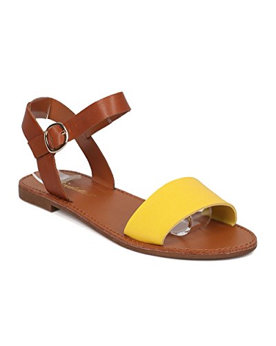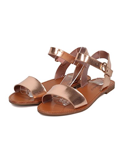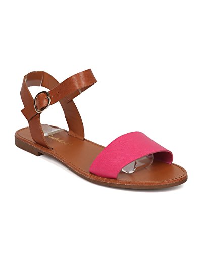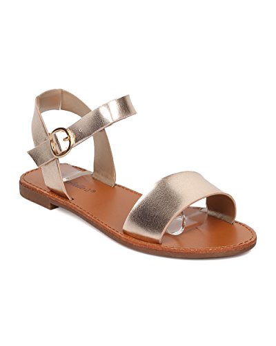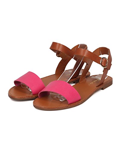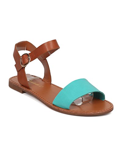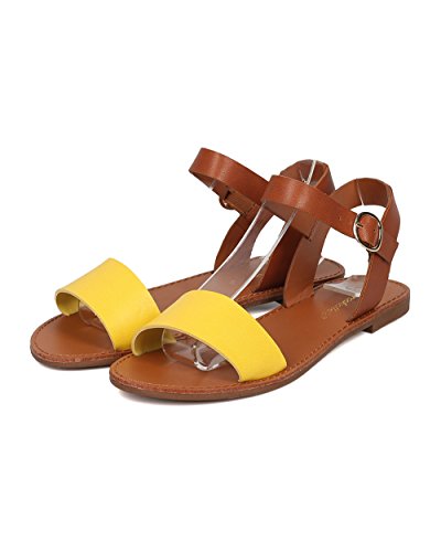 | Women Leatherette Ankle Strap Sandal - Casual, Everyday, Summer - Open Toe Flat Sandal - GG25 B... |