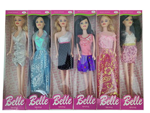 Bulk Set of 12 Fashion Beauty Dolls each with their own unique dress and shoe (As Shown in the Picture)! Each Doll Measures 11.5" Tall and features Bendable Arms and Legs. Each set will come with 6 blondes and 6 brunettes. 12 Different Dresses (As pictured). Each will come in their own individual display box. Great for gift party favors!Feature