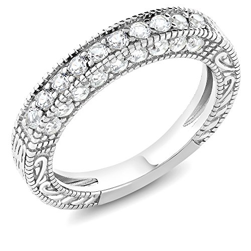 -. Binding : Jewelry -. Brand : Gem Stone King -. Color : White -. Department : womens -. Feature : CARAT TOTAL WEIGHT - 1.00 CT (This item is proudly custom made in the USA) / MEASUREMENT - Stones: 2mm; White Created Sapphire. Round Hearts And Arrows Crafted in 925 Sterling Silver Beautiful Wedding Band Ring. / ELEGANT- And sophisticated this gorgeous ring promises a carefree and comfortable wear. Its design is meant to accentuate the fingers beautifully. This ring is truly a gorgeous piece that deserves a spot in every jewelry collection. / PURE PERFECTION- This ring is perfect for professing your affections for that special someone or as a just "Thinking of you" gift. It can be worn with any outfit and is a truly gorgeous addition to any jewelry collection. Gift this beautiful piece to yourself or to someone you love. / Gemstones may have been treated to improve their appearance or durability and may require special care. -. Model : MGZ-0958-WHITE -. NumberOfItems : 1 -. PackageQuantity : 1 -. ProductGroup : Jewelry -. ProductTypeName : FINERING -. Title : 1.00 Ct White Created Sapphire 925 Sterling Silver Wedding Band Ring (Available in size 5, 6, 7, 8, 9)